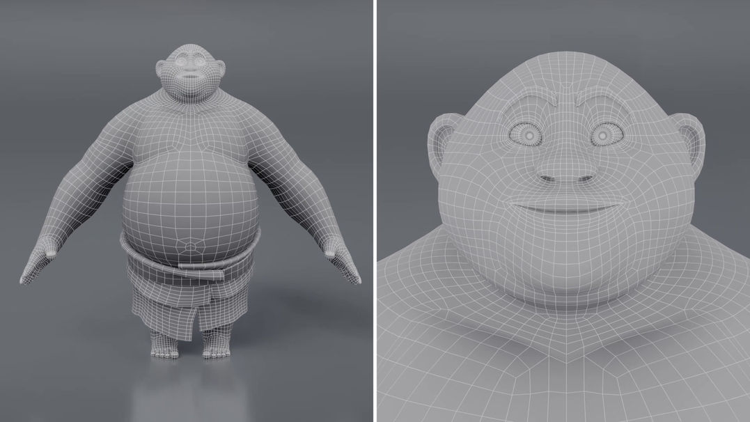 Kumu was built with a focus on organic modeling, hand-painted textures, and detailed xGen grooming to capture his soft, clumsy charm. His skin, hair, and accessories were crafted to enhance personality and believability.